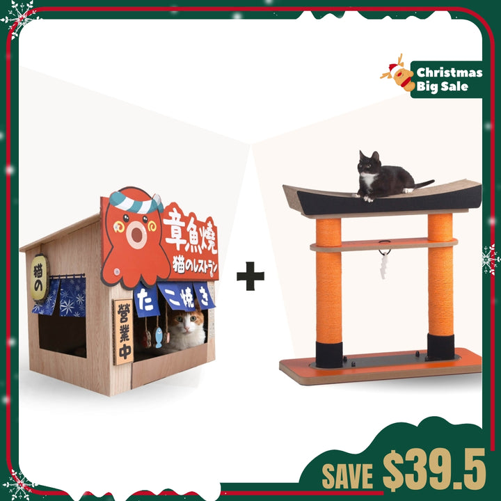 - The [Bundle 3]: Torii Cat tree + Takoyaki Cat House.