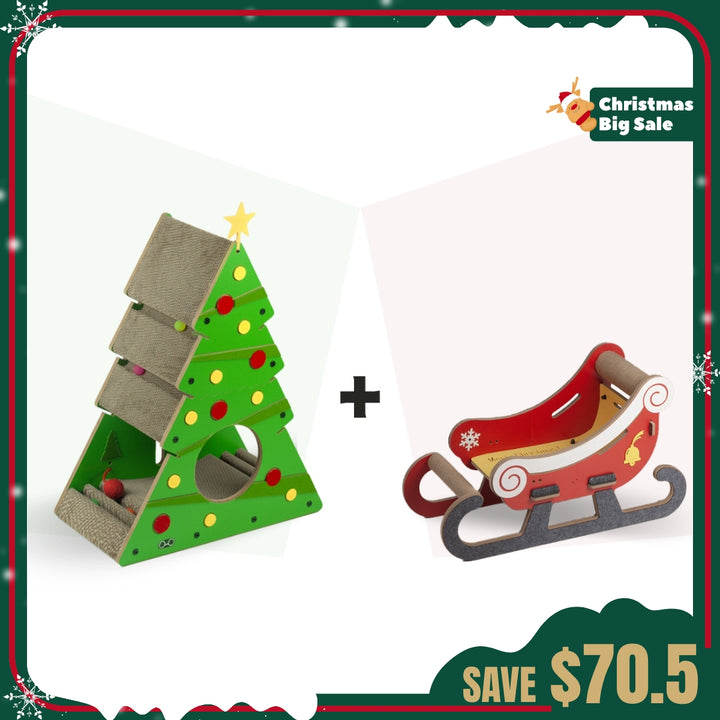 - The [Bundle 2]: Christmas Tree Cat Scratcher + Christmas Sleigh Cat Scratcher.